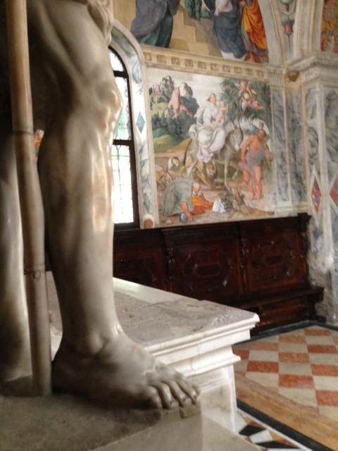 San Vito al Tagliamento, nella chiesa di Santa Maria dei Battuti, conserva il ciclo di affreschi più bello e importante di Pomponio Amalteo (1505-1588), allievo e genero del Pordenone. Ma perché mai l’artista ha raffigurato San Paolo che tiene un gran libro sotto un piede e Re David che srotola un cartiglio minaccioso? Queste immagini sono forse frutto di un suggerimento che viene dal potente e colto patriarca Grimani? Un percorso attraverso questa e altre significative opere dell’Amalteo per scoprire, alla fine, che il nostro artista ha perfino anticipato il cinema.