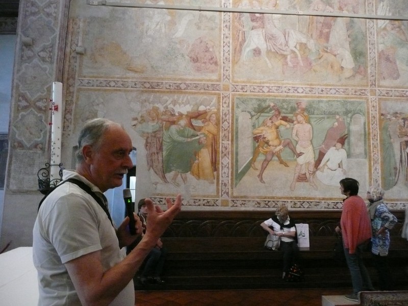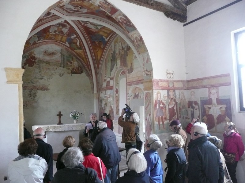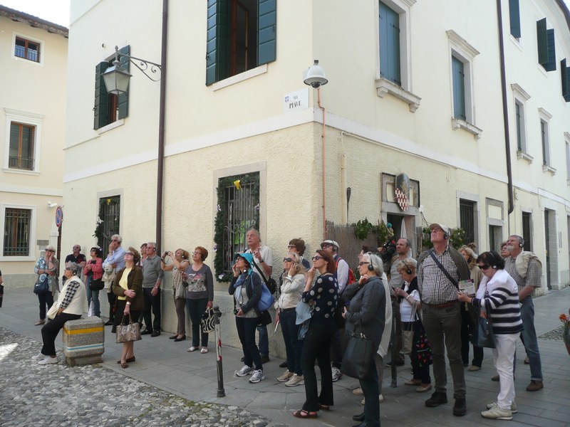 Dalla cultura tedesca a quella padana. Affreschi trecenteschi alla bolognese. Il duomo romanico-gotico più bello al di qua dell'acqua e uno splendido Pordenone, forse un po' eretico. Uno sguardo dal balcone di casa: il Tagliamento e il Friuli a perdita d'occhio. Degustazione guidata con i formaggi Tosoni, i salumi e il muset di Lovison, i dolci di Stefano Venier e i vini autoctoni di Emilio Bulfon.