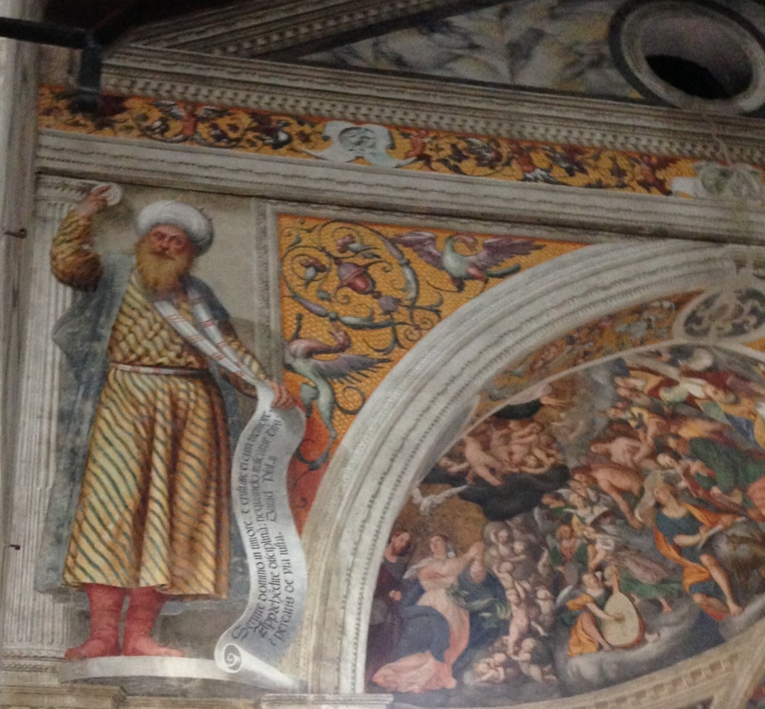 San Vito al Tagliamento, nella chiesa di Santa Maria dei Battuti, conserva il ciclo di affreschi più bello e importante di Pomponio Amalteo (1505-1588), allievo e genero del Pordenone. Ma perché mai l’artista ha raffigurato San Paolo che tiene un gran libro sotto un piede e Re David che srotola un cartiglio minaccioso? Queste immagini sono forse frutto di un suggerimento che viene dal potente e colto patriarca Grimani? Un percorso attraverso questa e altre significative opere dell’Amalteo per scoprire, alla fine, che il nostro artista ha perfino anticipato il cinema.