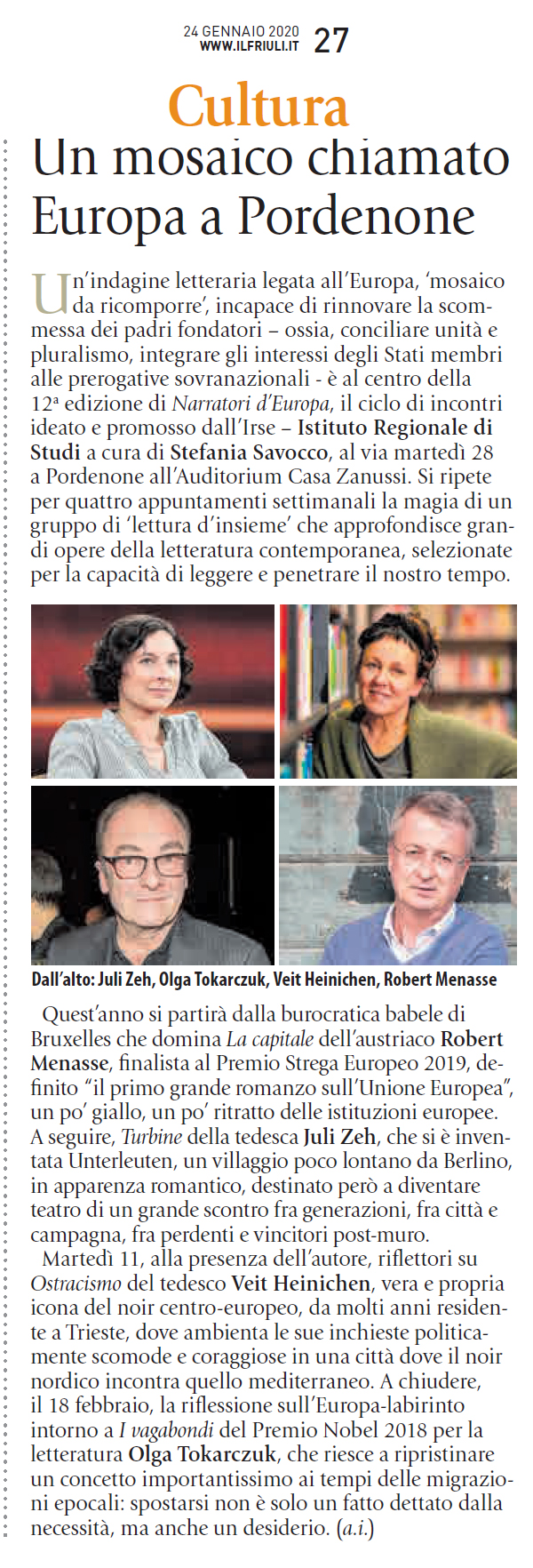 Dodicesimo ciclo della serie “Narratori d’Europa”