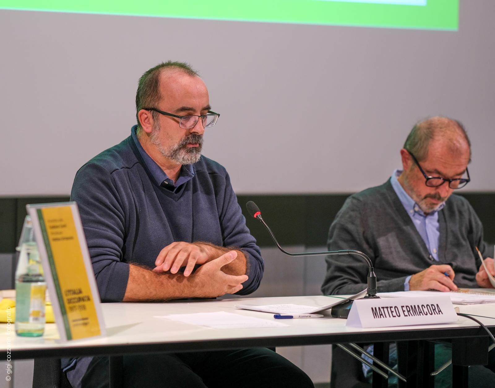 Matteo Ermacora, dottore di ricerca in storia sociale, insegna nelle scuole secondarie superiori e collabora con l’Università degli Studi di Udine. Fa parte del direttivo dell’Istituto friulano di storia del movimento di liberazione e della redazione di «DEP. Deportate, esuli, profughe. Rivista telematica di studi sulla memoria femminile»; le sue ricerche sono principalmente dedicate alla Grande Guerra, all’emigrazione, ai giovani, al lavoro, al rapporto tra violenza bellica e popolazione civile. Sul primo conflitto mondiale ha pubblicato numerosi studi, tra i quali Cantieri di guerra. Il lavoro dei civili nelle retrovie del fronte italiano (1915-1918), Il Mulino, Bologna 2005; Terre ferite. L’impatto della Grande guerra sul Friuli, Ifsml, Gorizia 2018; ha curato i volumi Neutralità e guerra. Friuli e Litorale austriaco nella crisi del 1914-1915, Consorzio culturale del monfalconese-Istituto Livio Saranz, Trieste 2015; Le «disfatte» di Caporetto. Soldati, civili, territori (1917-1919), Eut, Trieste 2019; ha curato le voci Rural Society; Civilian Morale; Labour, Labour Movements, Trade Unions and Strikes (Italy); Occupation during and after the War (Italy), in 1914-1918-online. International Encyclopedia of the First World War. Attualmente sta conducendo una ricerca sulla mobilitazione dei contadini italiani durante il primo conflitto mondiale.
