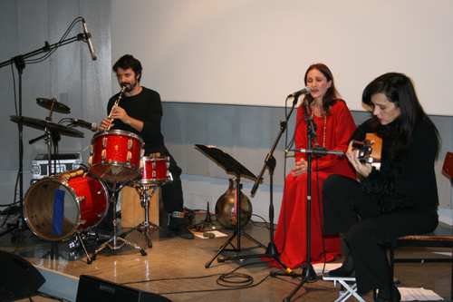 Karina Oganjan, cantante armena, Anna Garano, chitarrista triestina/sicula cultrice di musica andalusa, Blaž Celarec, percussionista/clarinettista sloveno hanno offerto all’Auditorium della Casa dello Studente gremito questo percorso attraverso la musica armena, yiddish/sefardita e gitano andalusa, alla ricerca delle radici comuni di espressioni artistiche solo apparentemente lontane, che da secoli tanto hanno influenzato la musica europea.