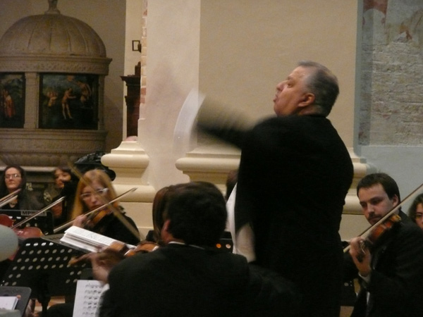 In programma un autore da lui particolarmente amato, Mendelssohn, e una sinfonia di rara esecuzione, “Lobgesang”, scelta per onorare il 200° anniversario della nascita del compositore tedesco: ispirata alla Bibbia e ricca di spiritualità, ma capace di un messaggio universale, cui l’appassionata direzione ha regalato una splendida sontuosità. L’esecuzione di questa “sinfonia cantata” è stata un po’ anche la punta di diamante di un articolato percorso di collaborazione tra il Centro di Iniziative Culturali e l’Orchestra e Coro San Marco, suggellata da una personalità musicale di altissimo livello come Shambadal.