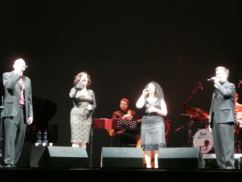 E’ stato un gradito ritorno dopo quasi quattro anni quello dei New York Voices al Verdi di Pordenone per la conclusione del XVIII Festival Internazionale di Musica Sacra, in una serata resa magica da una nevicata che ha però impedito a molti di essere presenti allo spettacolo (e ci è mancato poco che così fosse per gli stessi artisti). Alle soglie del Natale il programma si è rivelato un’efficace miscela di brani tradizionali e carole che hanno inframmezzato composizioni originali e standard jazz, in cui non si è comunque avvertita alcuna forzatura nella cucitura del percorso grazie a una continuità stilistica che ha legato scelte così eterogenee nel segno di un’espressività sempre comunicativa e coinvolgente. L’apertura avviene con le quattro voci a cappella in O Come, All Ye Faithful, ossia l’inno gregoriano dell’Avvento Veni, Veni Emmanuel, che gode di grande popolarità nella tradizione vocale anglosassone. Accompagnate da un trio classico con pianoforte, basso e batteria, quelle che dal ’94 sono le quattro voci della formazione (nata comunque oltre vent’anni fa), le due femminili di Kim Nazarian e Lauren Kinhan e quelle maschili di Peter Eldridge e Darmon Meader, coinvolgono subito per la brillantezza nell’apertura armonica jazzistica degli accordi. La profondità e il fascino che le linee melodiche acquistano diventano il filo conduttore del percorso musicale, fra lo swing, il pop (Don’t You Worry ‘Bout A Thing, di Wonder) e le carole più note.